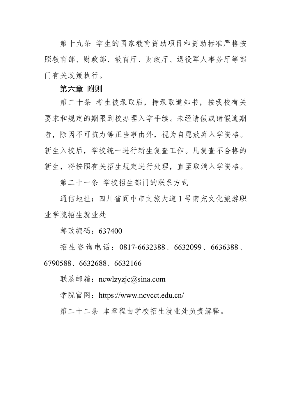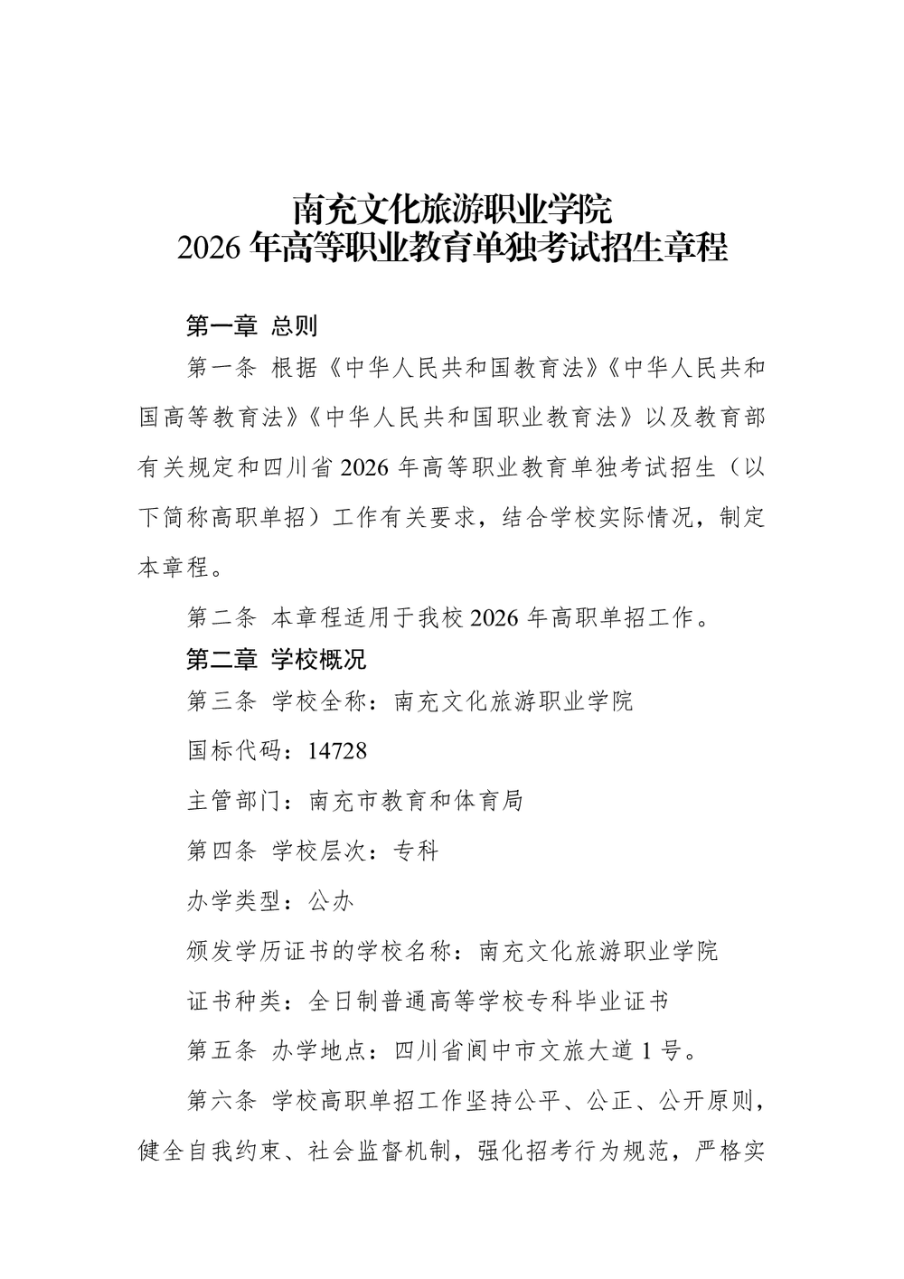 南充文化旅游职业学院2026年高等职业教育单独考试招生章程