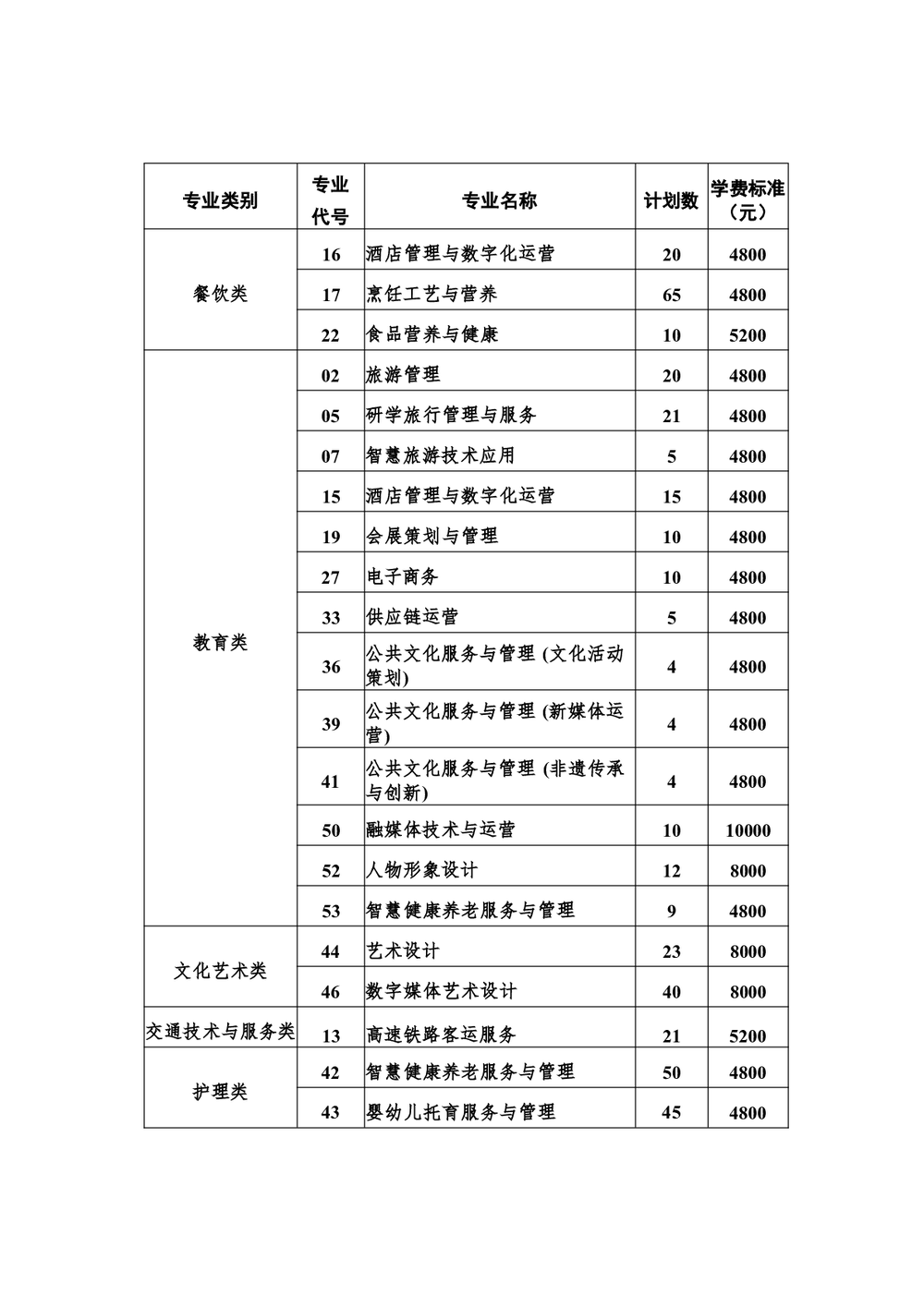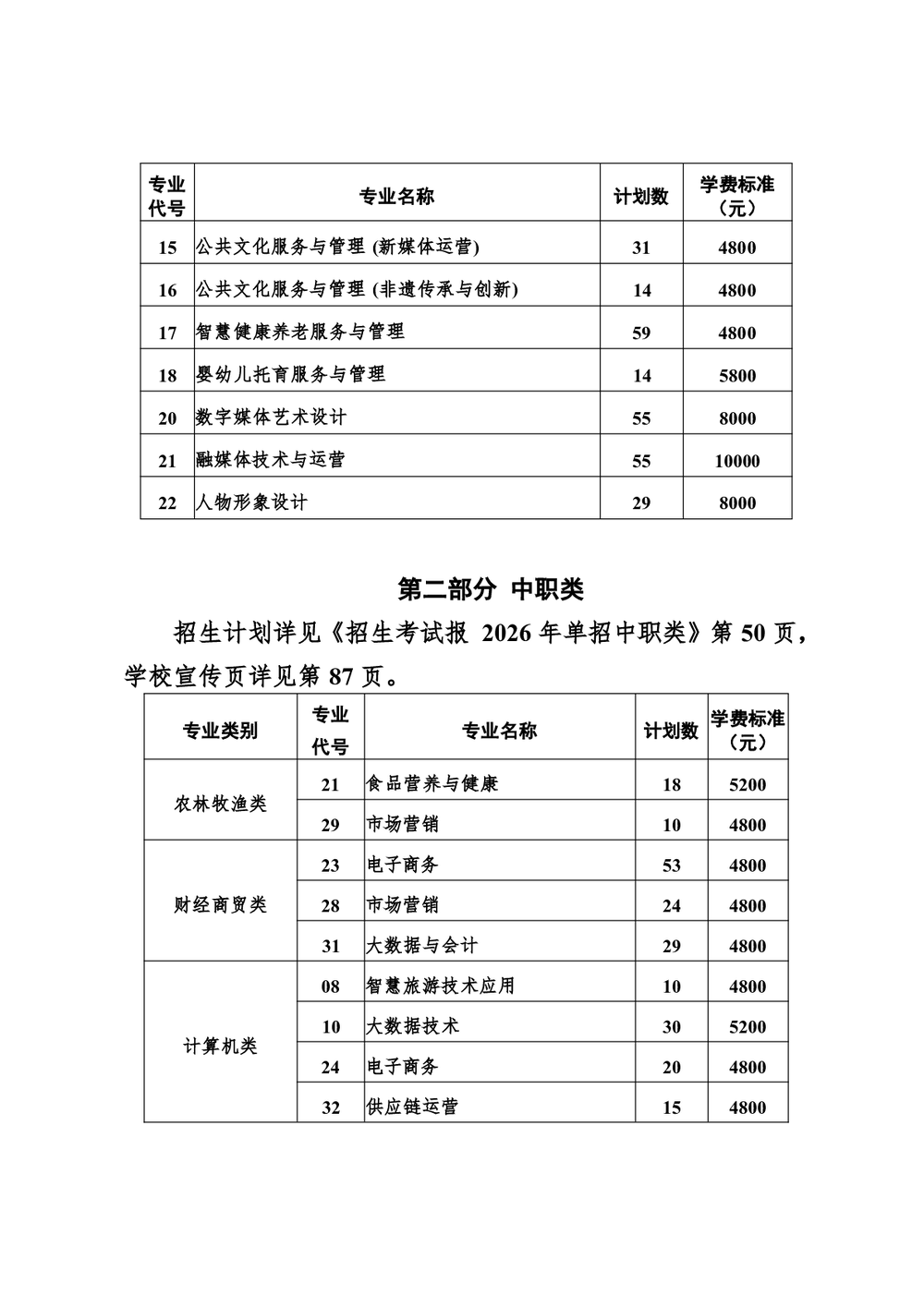 2026年高职单招招生计划