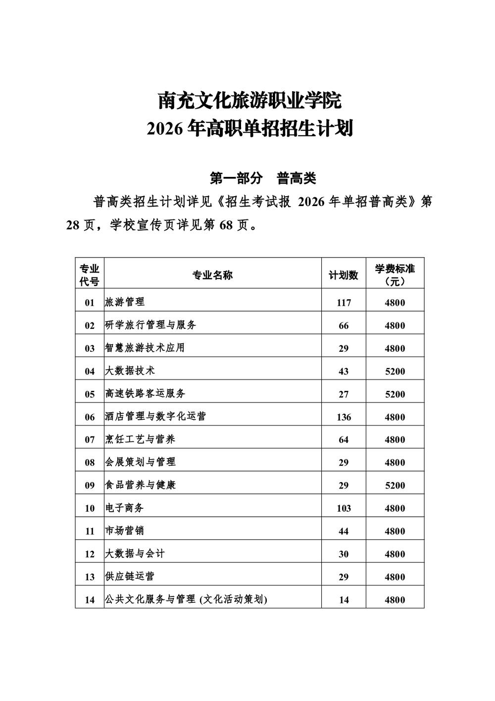 南充文化旅游职业学院2026年高等职业教育单独考试招生章程